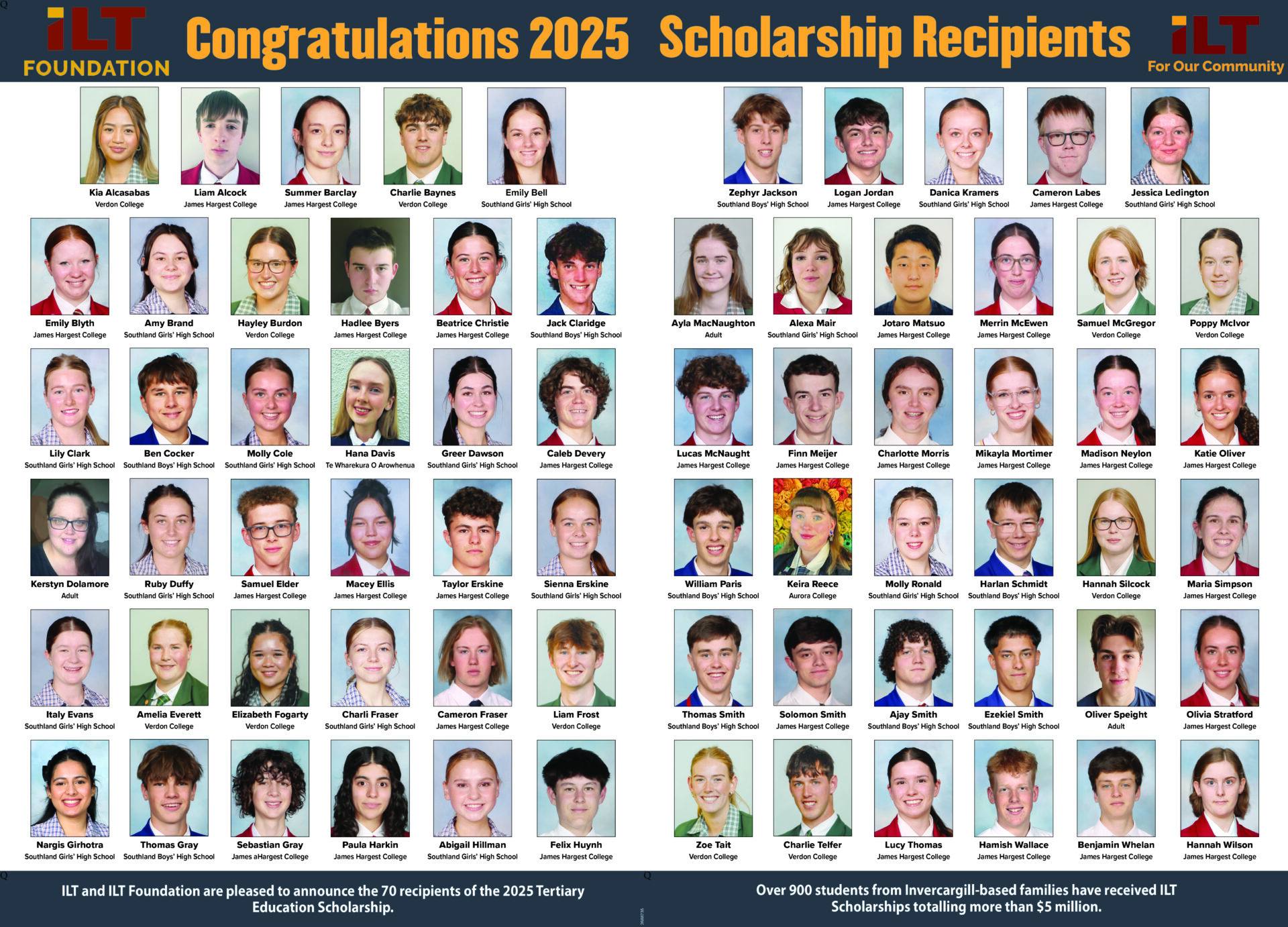 The 2025 ILT Tertiary Scholarship recipients are: